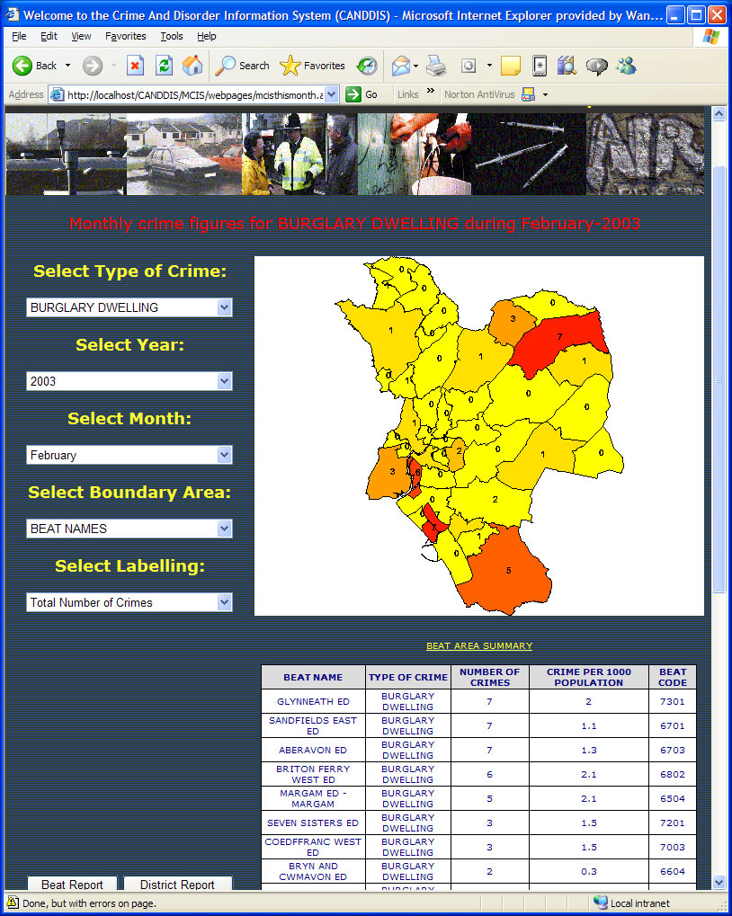 The Monthly Crime Incident Statistics system provides a tool in that process. By using a map interface data can be aggregated from random point data into meaningful depersonalised information. Senior managers and policy makers can use this information which provides a high level view of crime & disorder across a wide area. The Monthly Crime Incident Statistics is aimed at awareness rising and helps senior managers better understand crime and disorder. Providing a better understanding of crime and disorder allows policy makers to better target their strategies and implement action plans for reducing crime in a region.