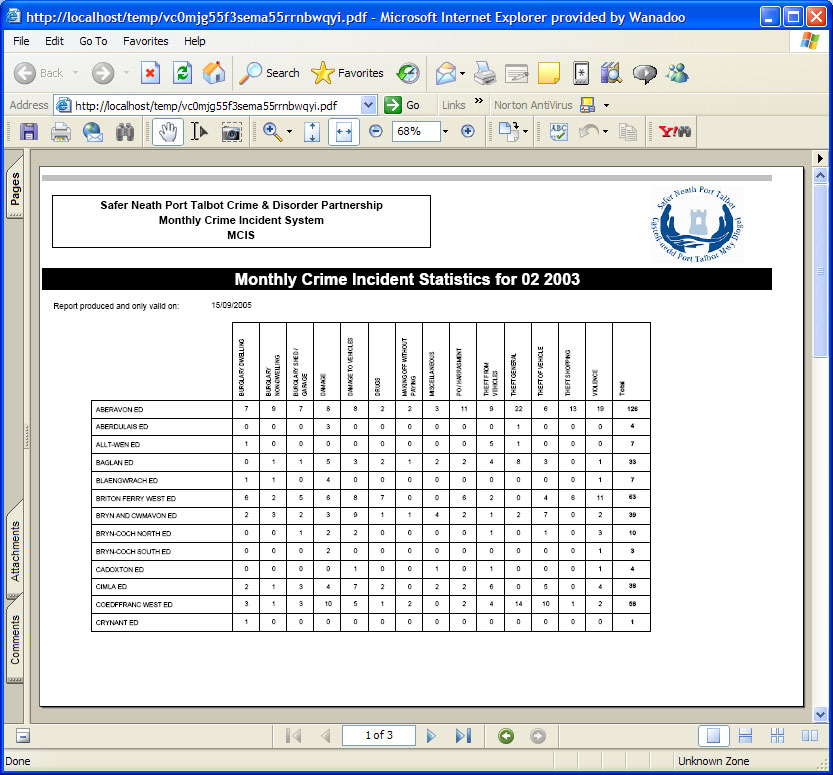 Easy to read and professionally styled reports outputs crime statistics for geographic areas. |