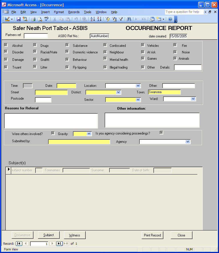 The process for obtaining ASBO's can be long and complicated. There are obvious benefits to having an effective information system for carefully managing the co-ordinators caseload. The system provides many predefined reports making data analysis, client tracking and auditing process incredible simple.